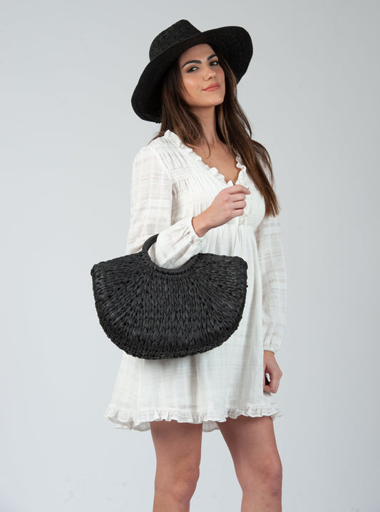 COREOPOSIS WOVEN STRAW TOTE-BLACK
