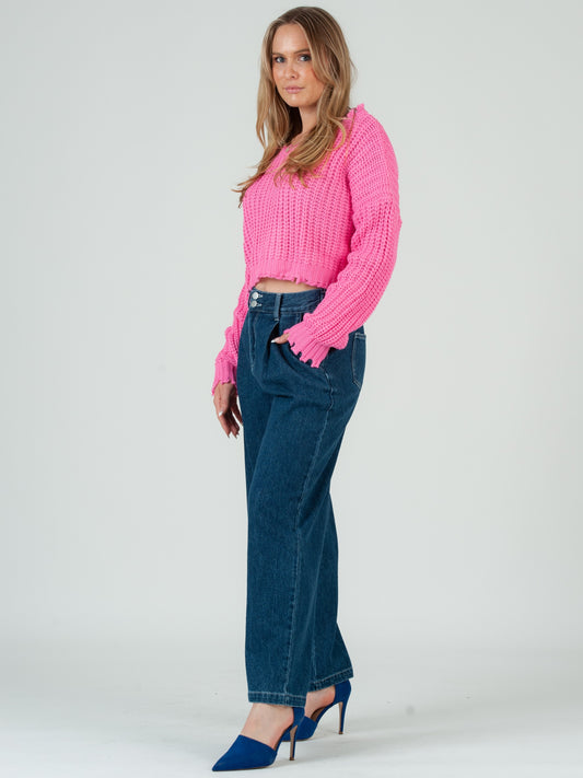 FIONA FRAYED EDGES CROPPED SWEATER-PINK