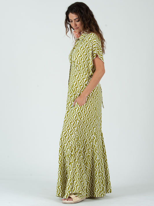 GINGER BUTTON DOWN MAXI DRESS-CYBER LIME