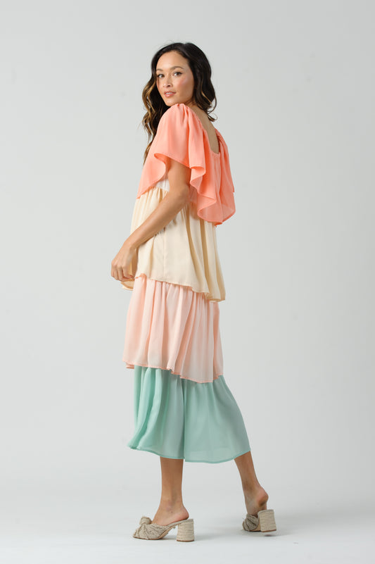 HELENE OFF THE SHOULDER TIERED DRESS-MELON BLOCK