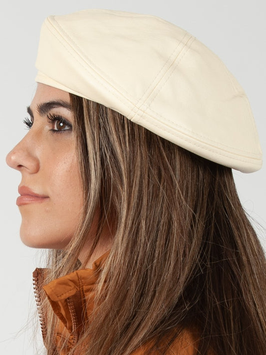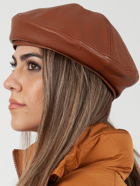ISABEL FAUX LEATHER BERET-TOBACCO