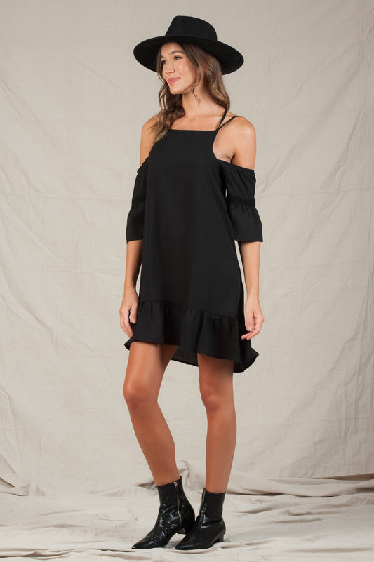 JULES COLD SHOULDER DRESS-BLACK SWIRL FLORAL
