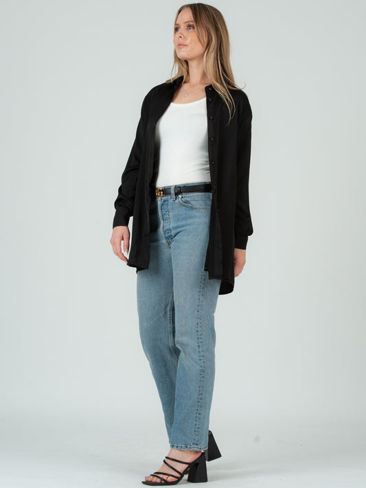 MIA BUTTON DOWN BLOUSE-BLACK