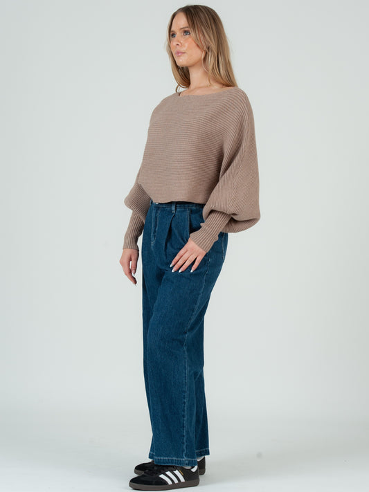 MISHA RIBBED SWEATER TOP-TAUPE
