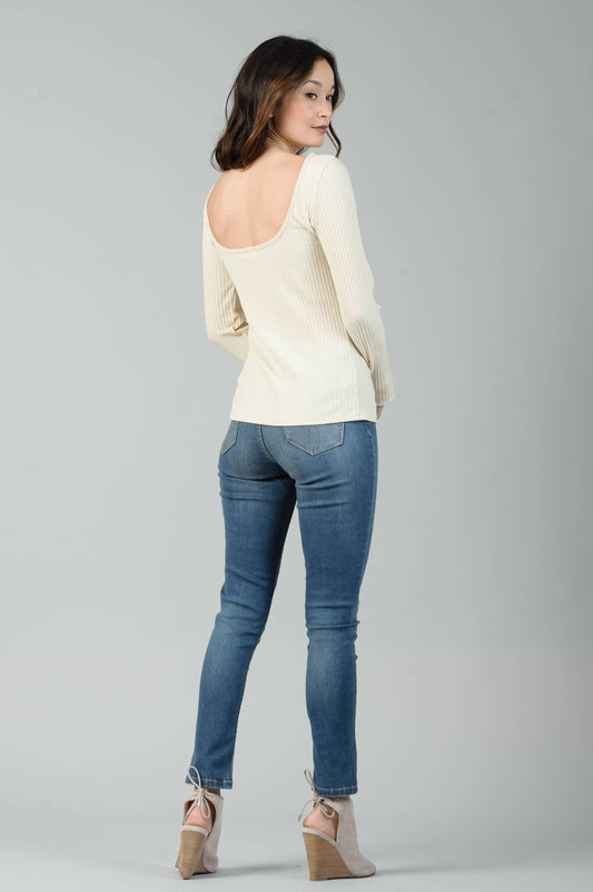 SQUARE KNIT LS RIBBED TOP-CREAMRegular price $30.00 USDRegular priceUnit price / per-