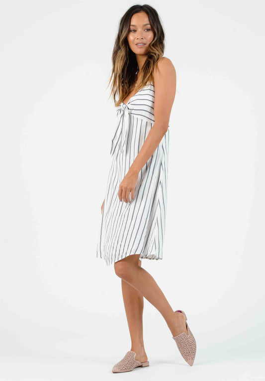 VIVIAN SWEETHEART CUT OUT MIDI DRESS-WHITE/NAVY STRIPE