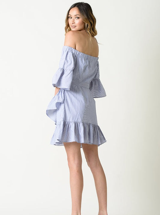 VIVIENNE OFF THE SHOULDER DRESS-BLUE STRIPE