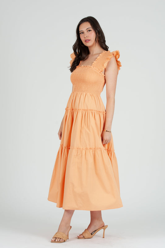 Women's Gauze Smocked Ruffle Strap Ditzy Floral Midi Dress