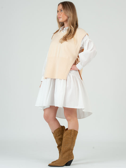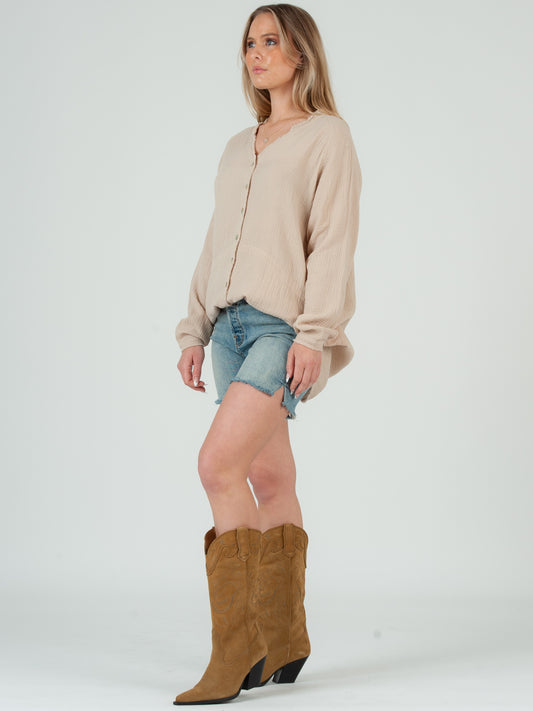 Women's Solid Double Gauze Button Down Tunic Top in Vanilla Latte