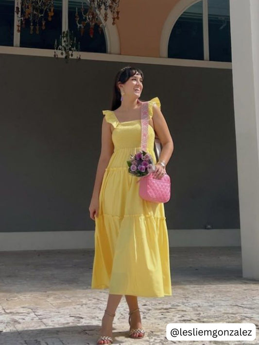 YUDITH SMOCKED MAXI DRESS-LT.YELLOW