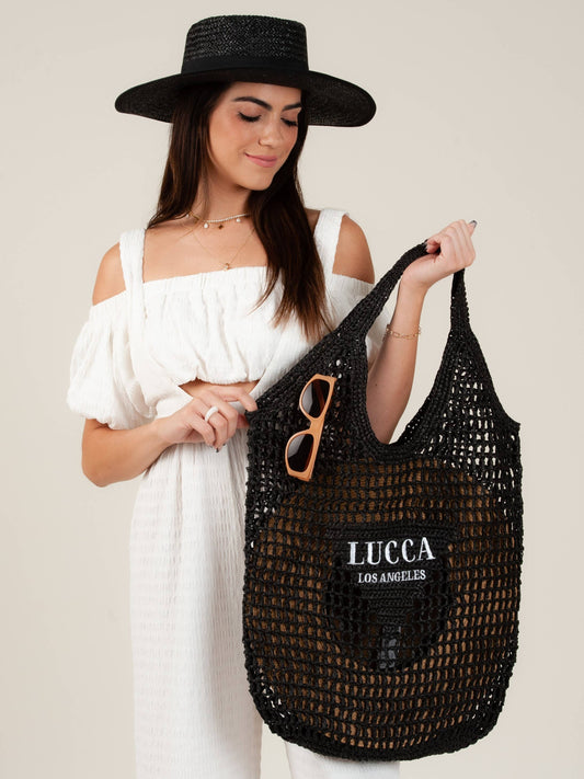 OVERSIZED 'LUCCA' STRAW TOTE-BLACK
