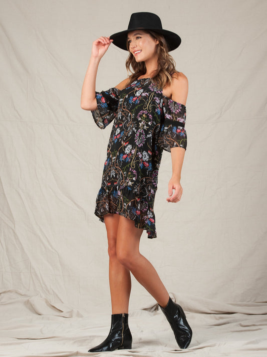 JULES COLD SHOULDER DRESS-BLACK SWIRL FLORALRegular price $15.00 USDRegular priceUnit price / per$70.00 USDSale price $15.00 USDSale