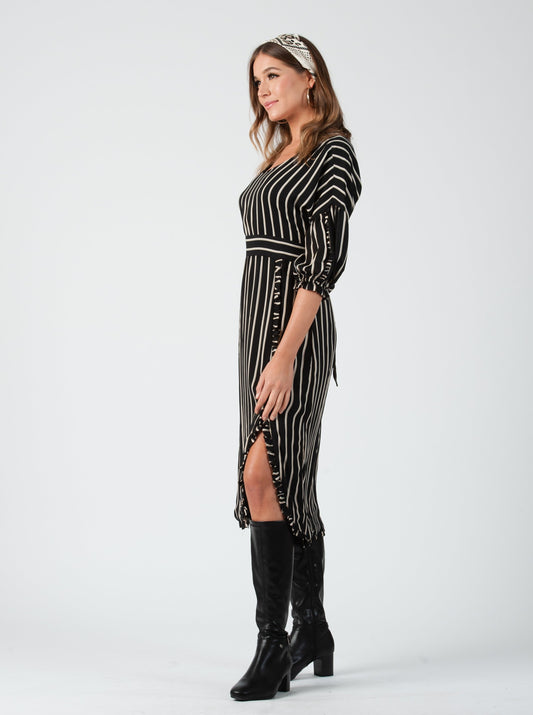 LENOX RUFFLED MAXI DRESS-BLACK TAN STRIPERegular price $15.00 USDRegular priceUnit price / per$84.00 USDSale price $15.00 USDSale