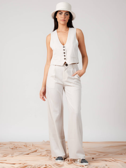 RALEIGH BUTTON DOWN TOP AND PANT SET-CREME