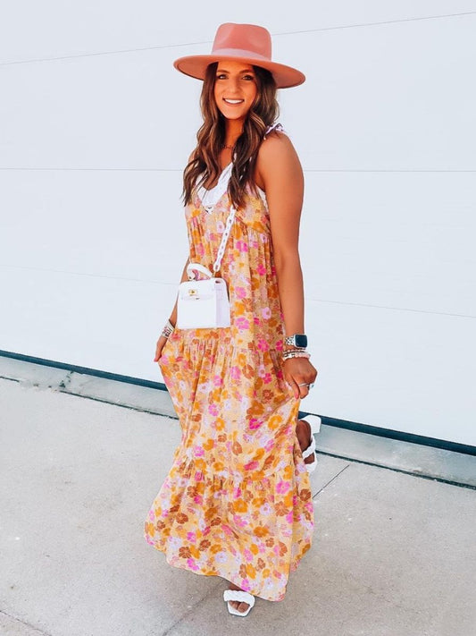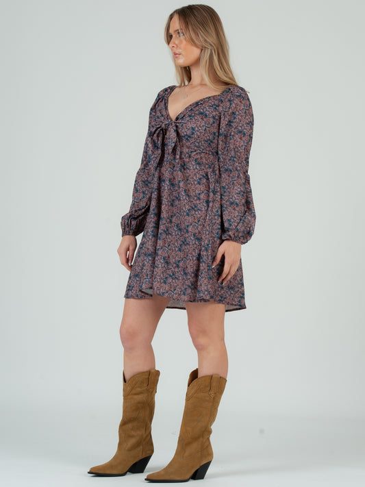 LANEY TIE FRONT BOHO DRESS-BROWN FLORAL