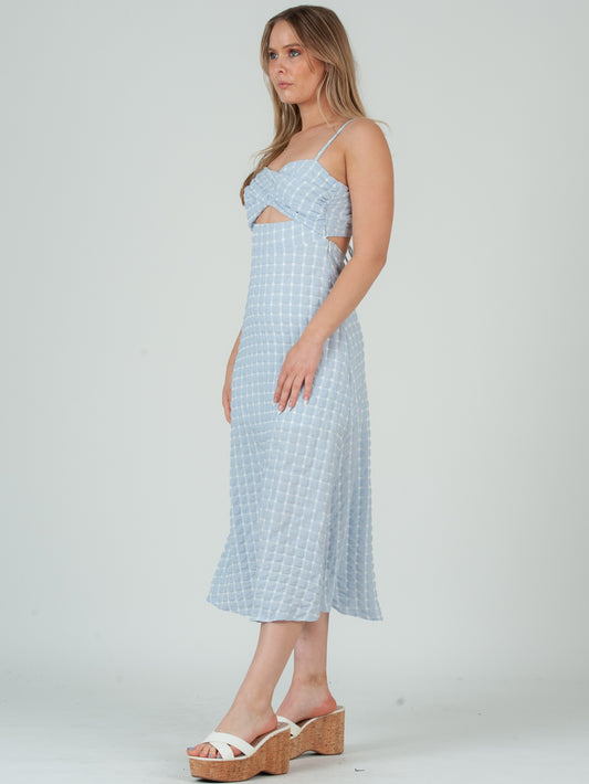 HAILEY GINGHAM CUTOUT DRESS-COOL BLUE