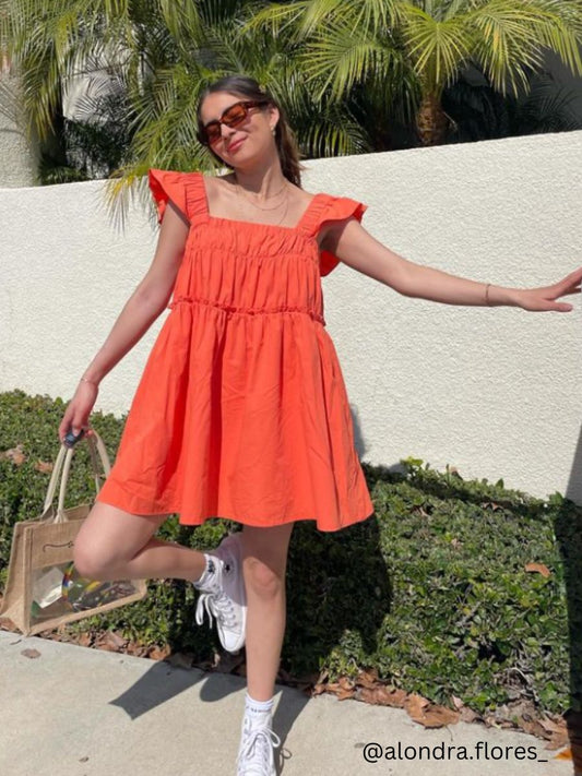JESSIE FLUTTER SHOULDER MINI DRESS-ORANGE