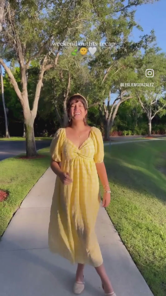 CLARA PUFF SLEEVE TWIST TOP MIDI DRESS-CANARY
