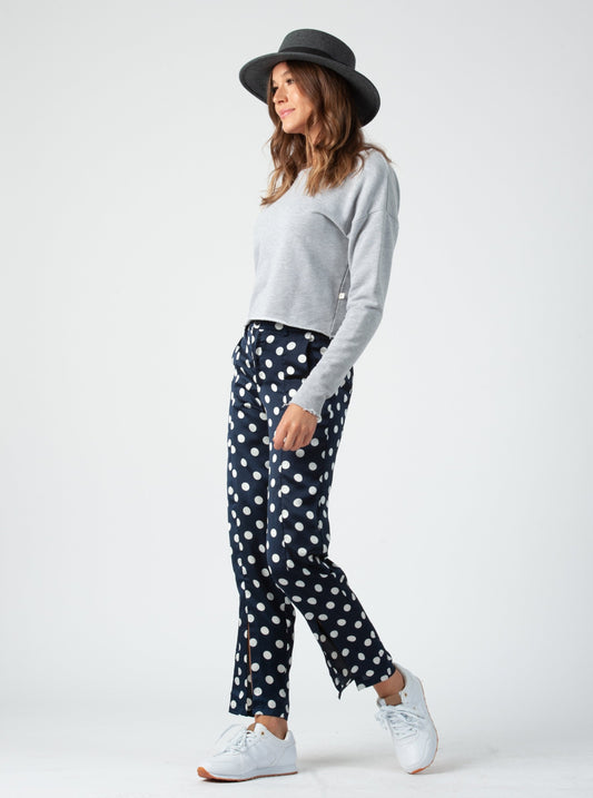 TIERRA SLIT TROUSER-NAVY POLKA DOT