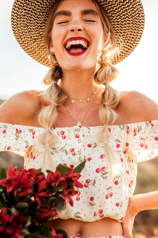 HYGEIA RUFFLE STRAP TOP-TAN MINI FLORAL