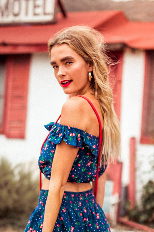 SAPPHIRE SPOTS SMOCKED PEPLUM TOP-SAPPHIRE SPOTS