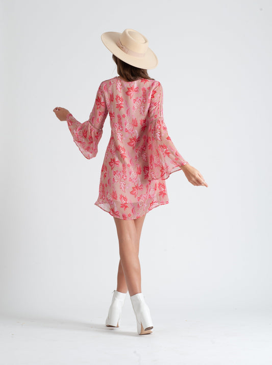 JULIE LADDER MINI DRESS-PINK FLORAL