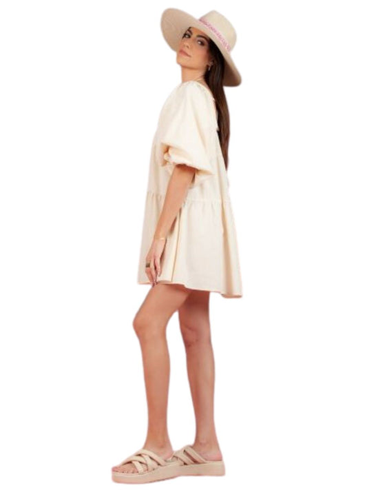 JEAN PUFF SLEEVE BABYDOLL DRESS-VANILLA
