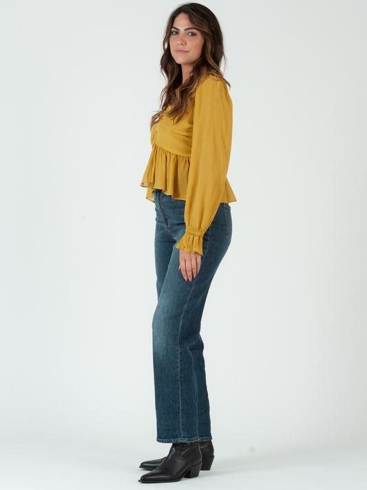 JANELLE FLUTTER HEM BLOUSE-CHARTREUSE