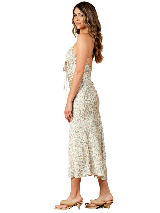 FREESIA SATIN SLIP DRESS-GREEN FLORAL