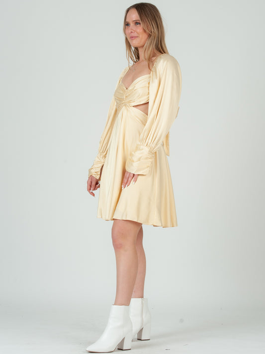CLARA PUFF SLEEVE TWIST TOP MIDI DRESS-CANARY