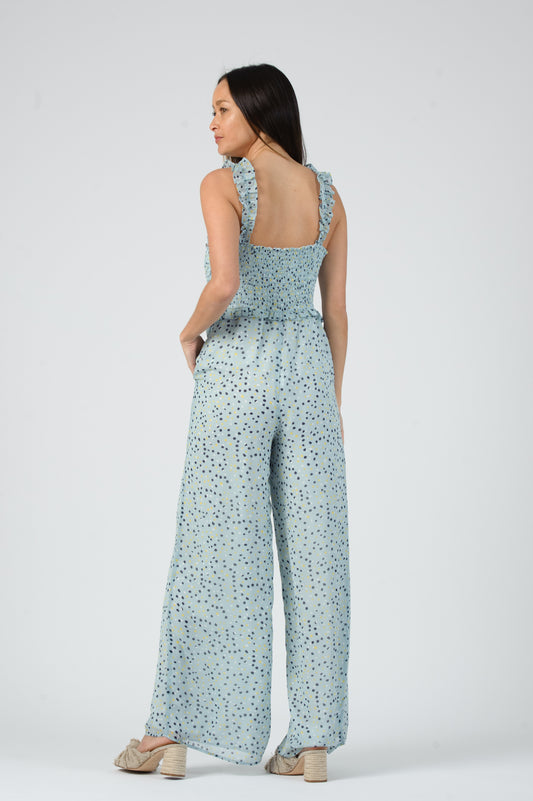 SMOCKED JUMPSUIT-SAPPHIRE SPOTS