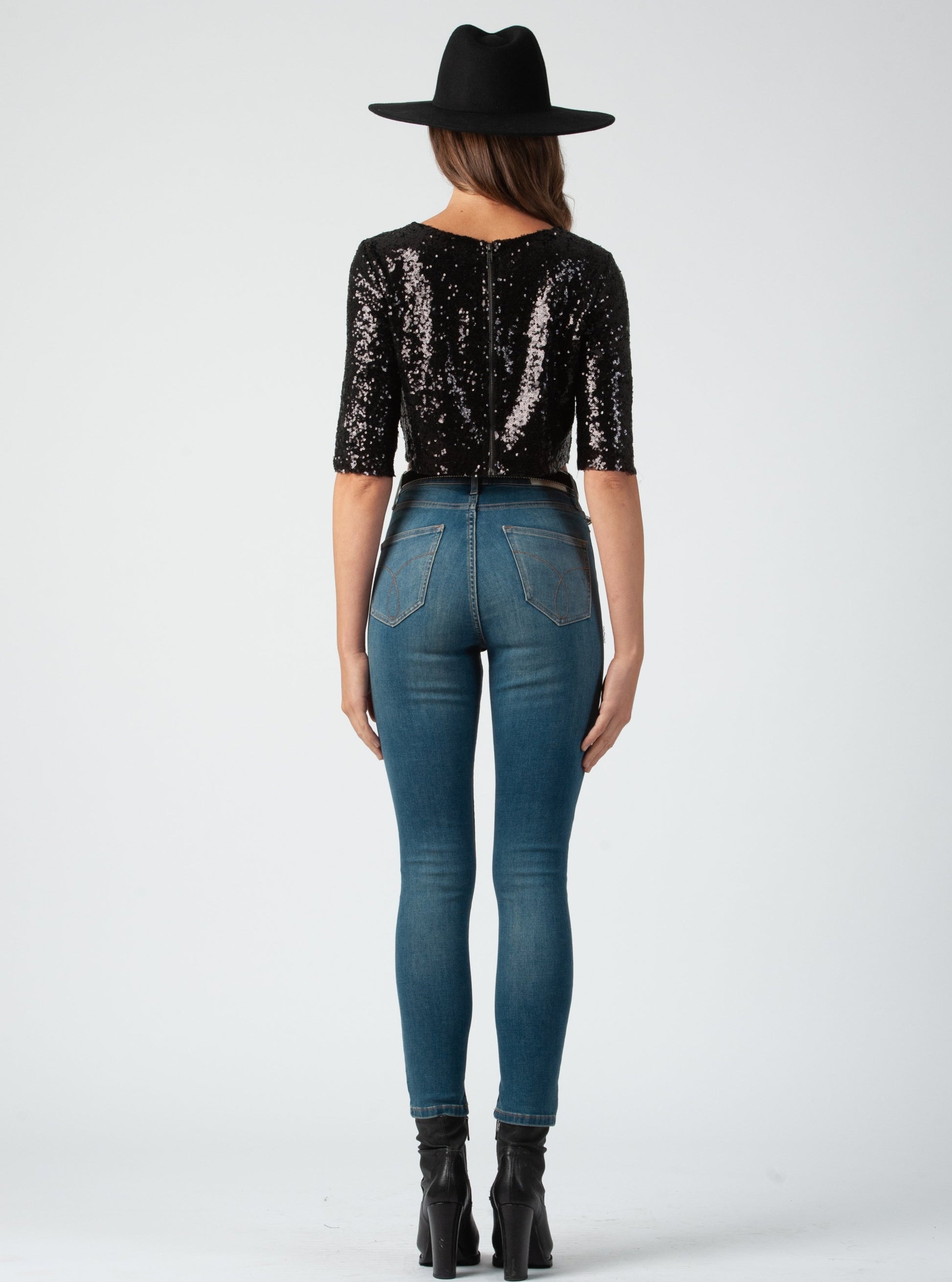 FARREL 3/4 SLEEVE SEQUIN TOP-BLACK