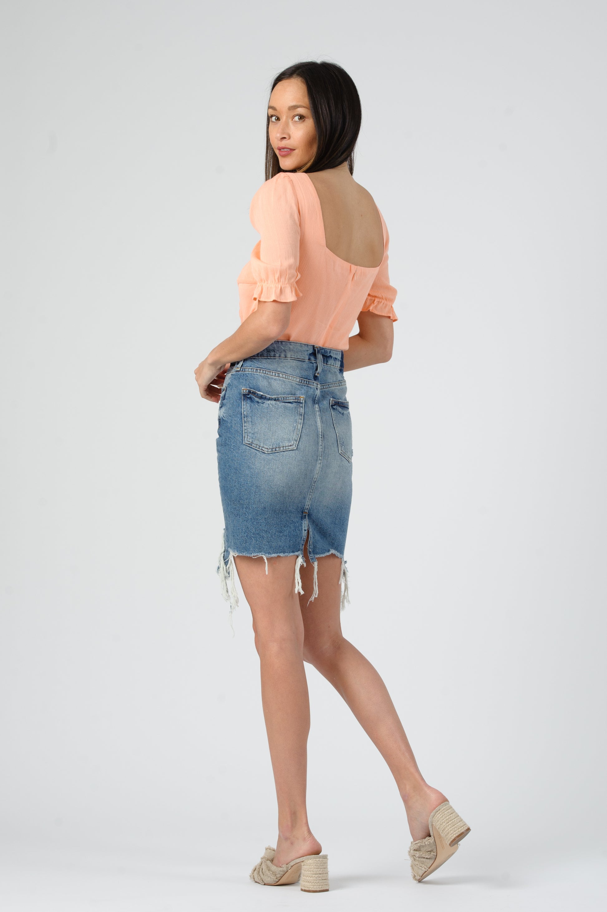 BAIA PUFF SLEEVE RUCHED TOP-CORAL