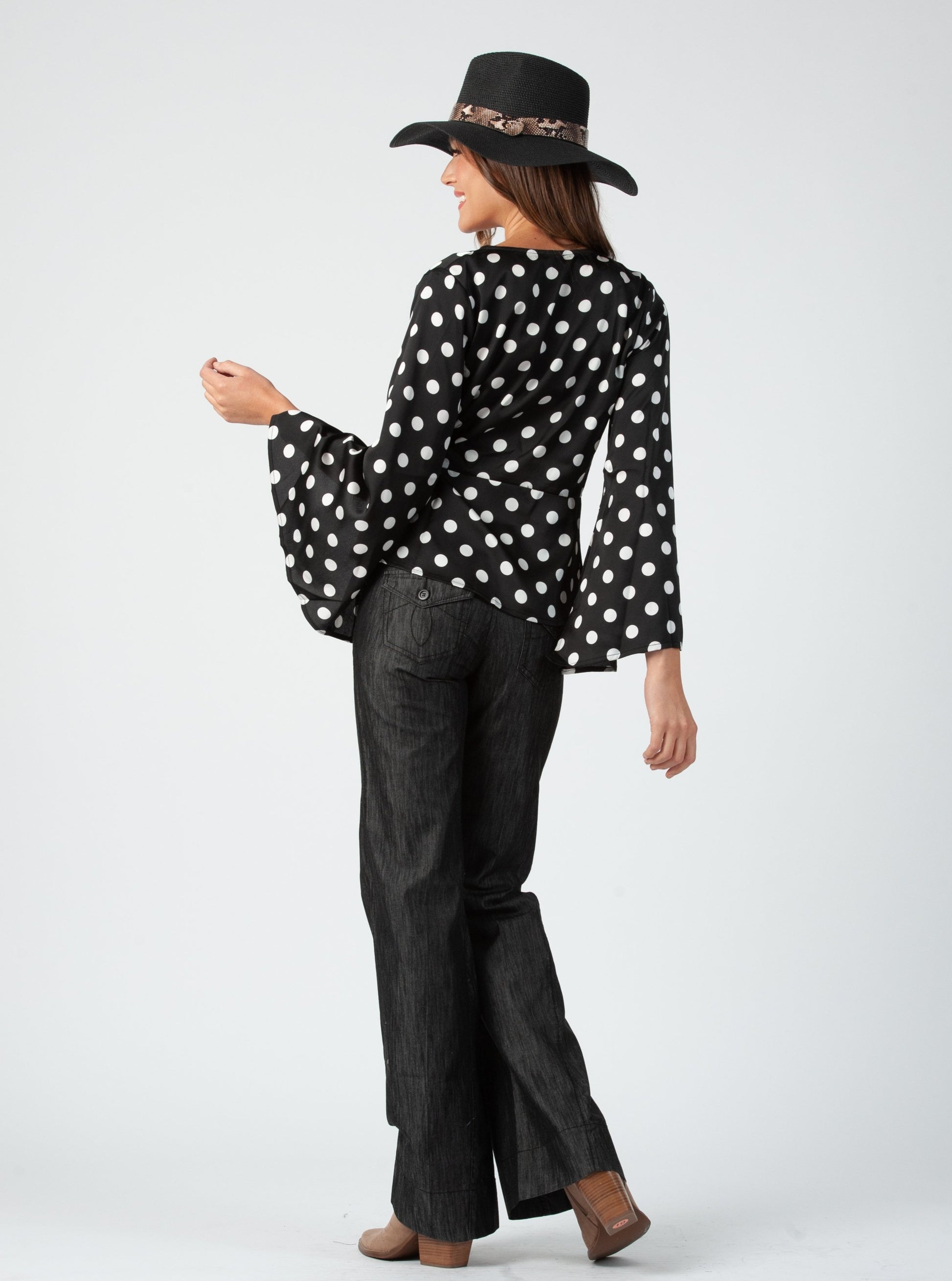 GENOA WRAP BLOUSE-BLACK POLKA DOT