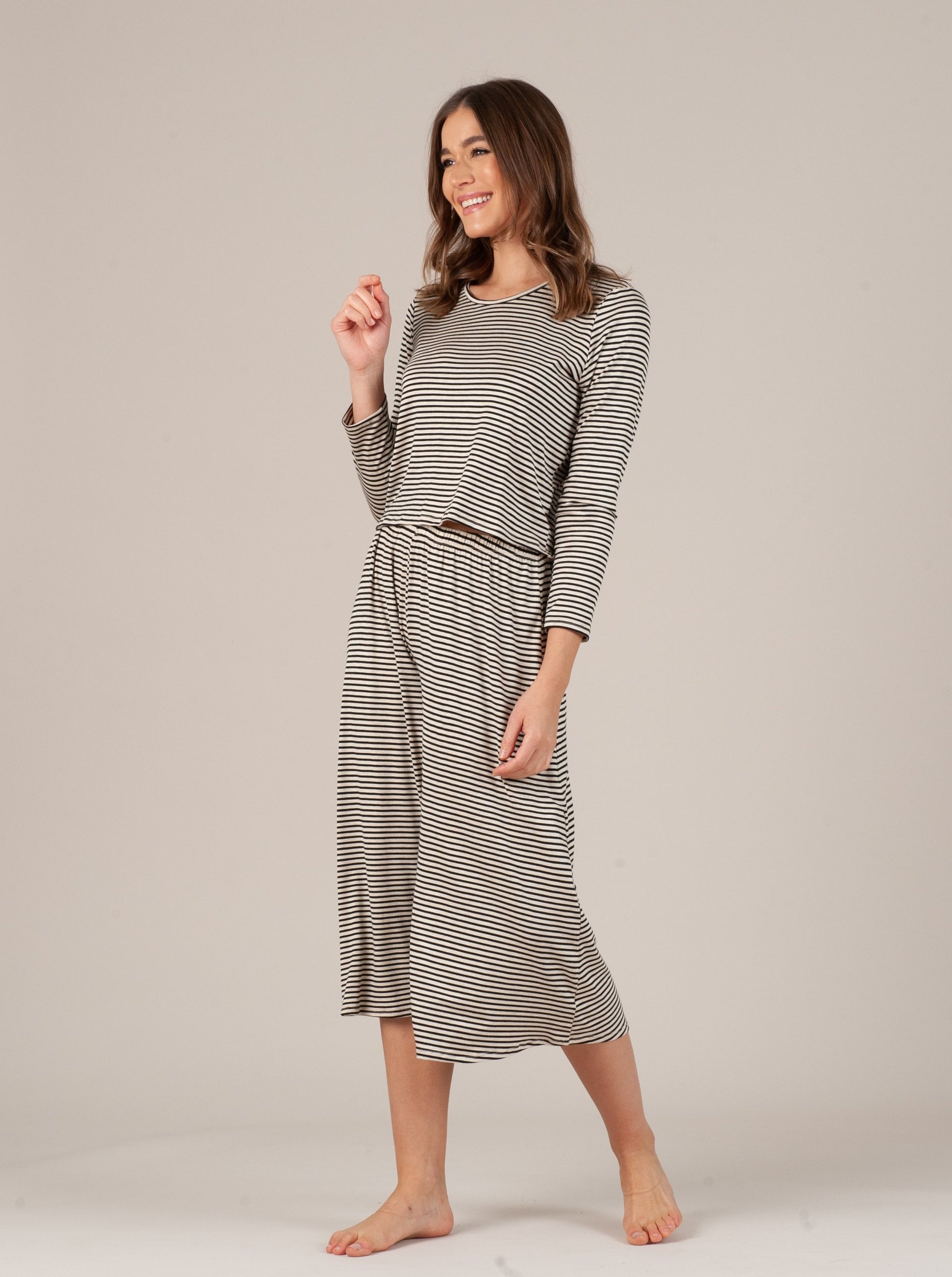 CALYPSO TOP-IVORY W/ BLACK STRIPES