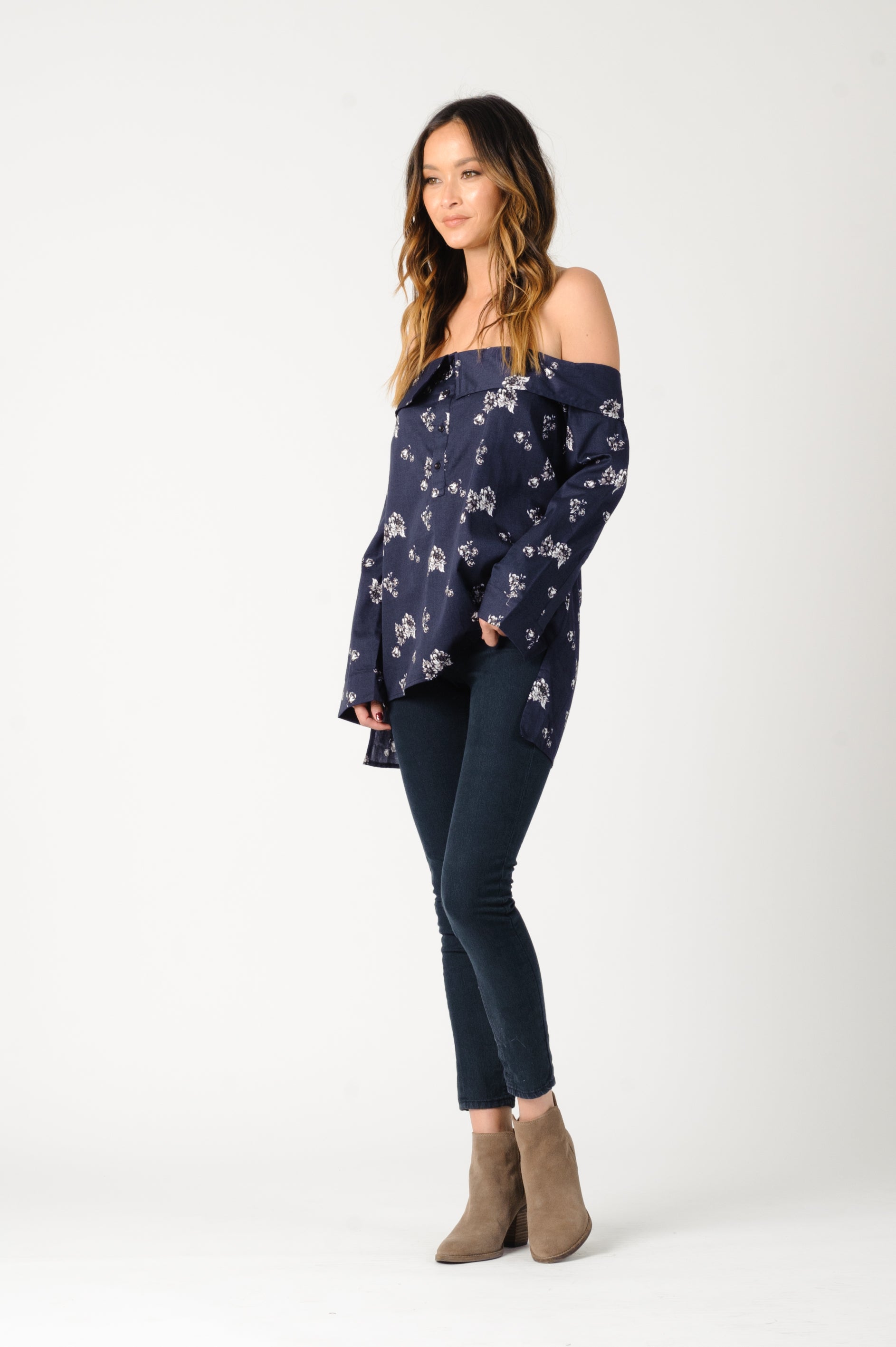 CHARLOTTE OFF SHOULDER TOP-NAVY FLORAL