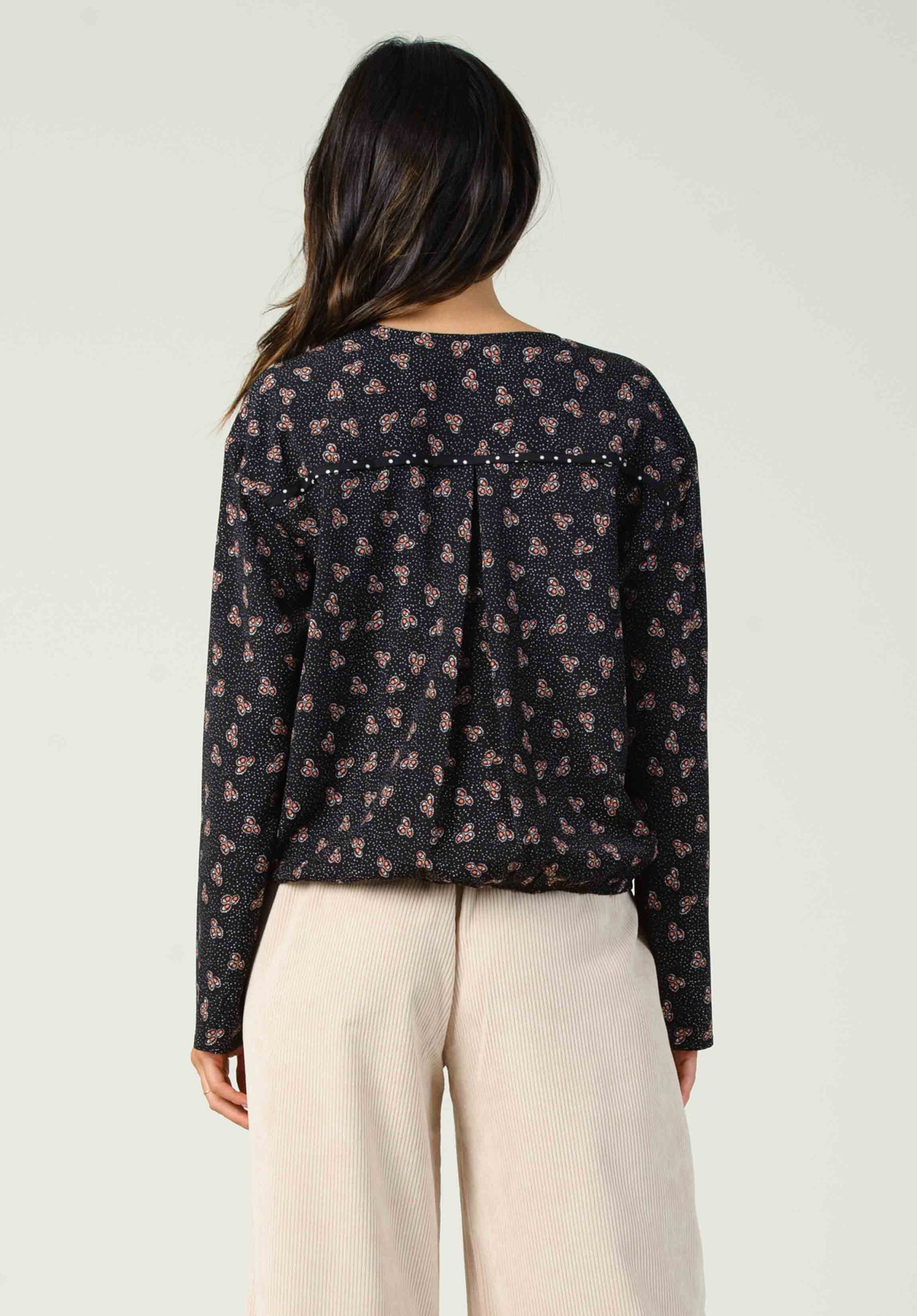 CLARET PIPING BLOUSE-BLACK MULTI DOT