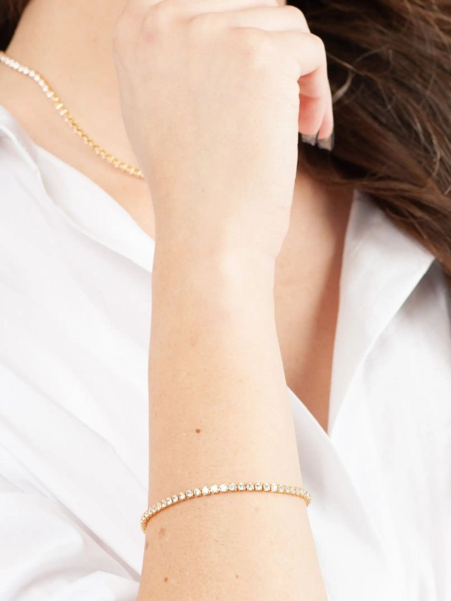 Layer it on or wear alone; this traditional tennis bracelet is an enchanting statement piece.