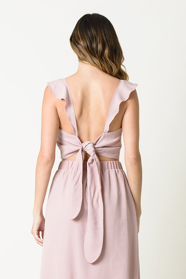 DIANA TIE BACK RUFFLE TOP-DUSTY PINK