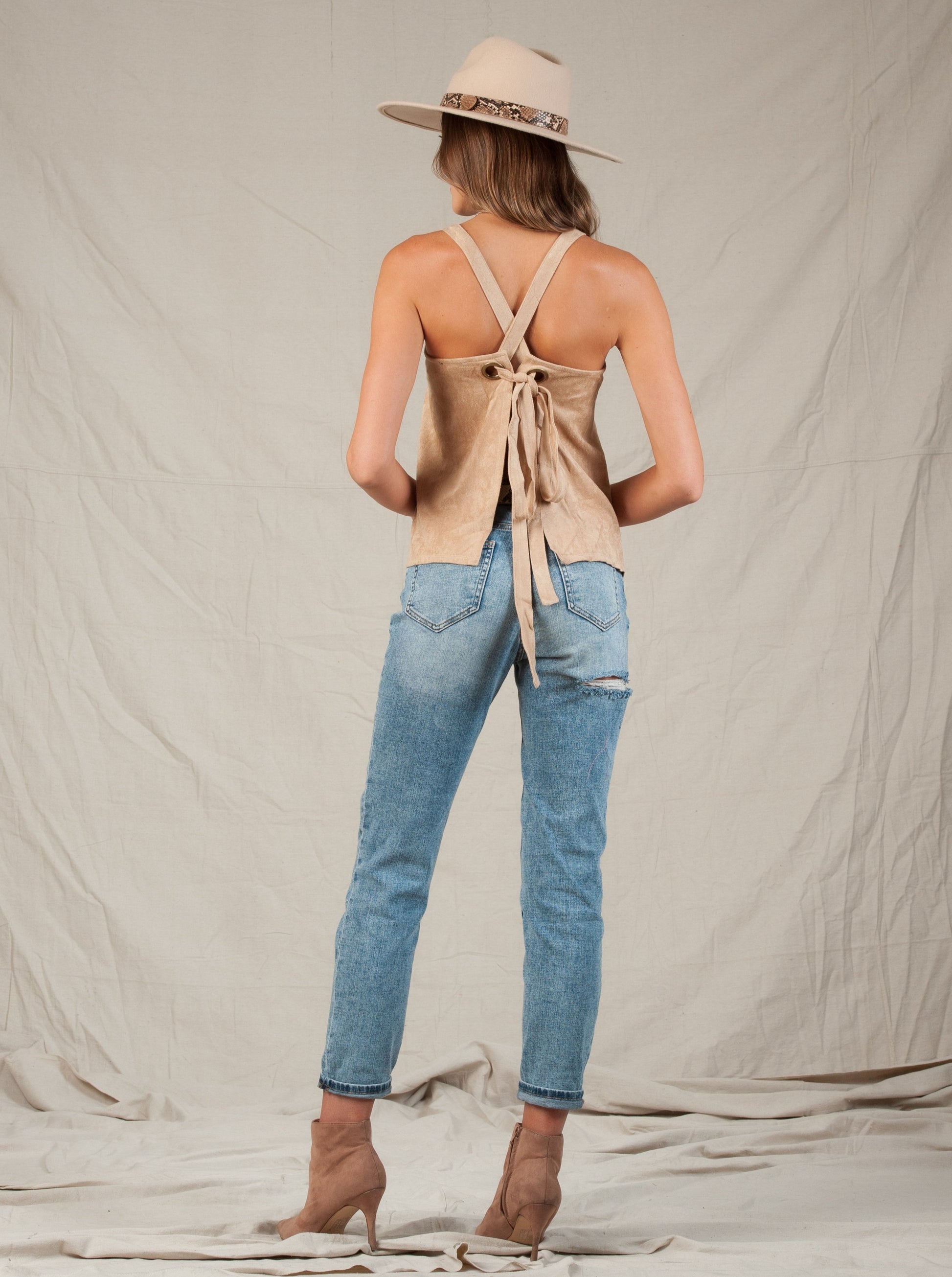 This Vegan Suede top is all you need to add to your favorite jeans and booties this season, cool grommet detail with adjustable straps to fit everyone perfectly!~