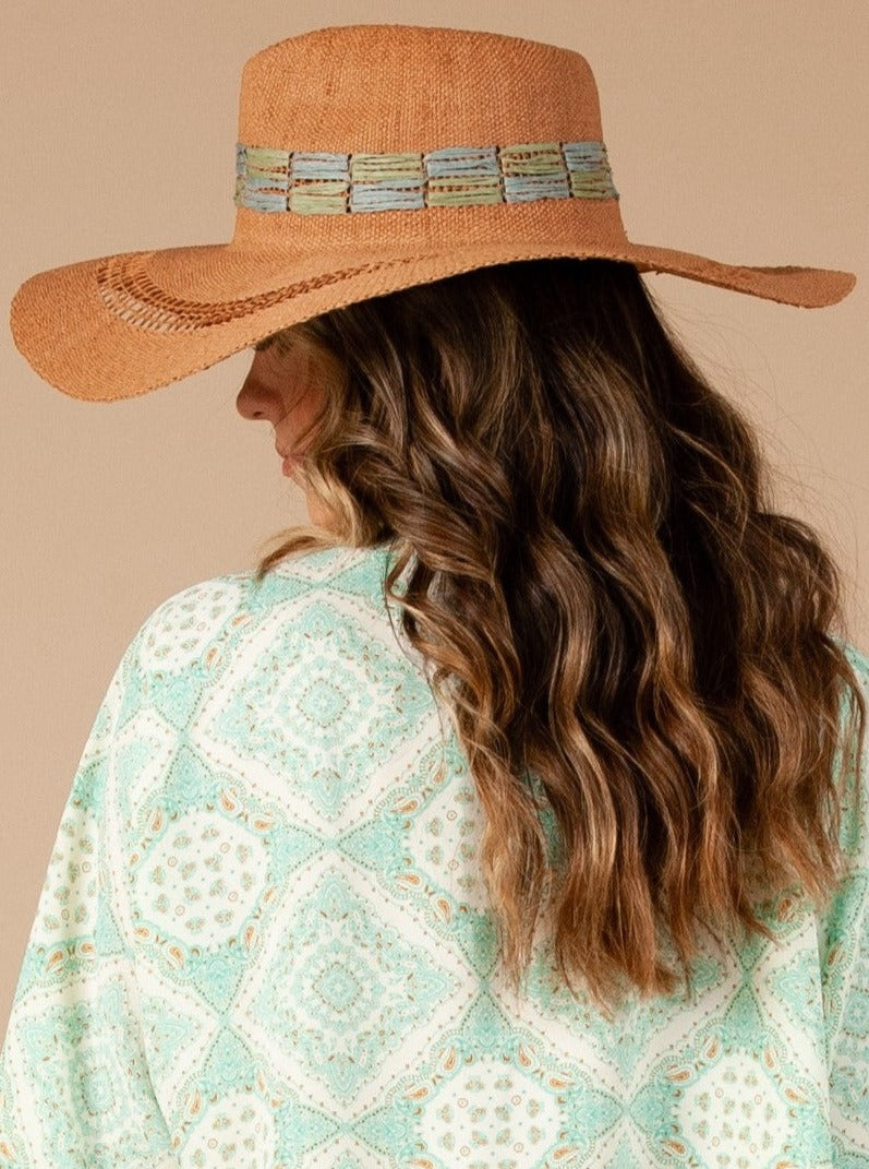 This wide-brimmed hat is designed with intricate detail, featuring paper woven into the pattern. The airy, lightweight material is perfect for keeping your head cool in the summer heat, while the timeless design makes for an effortless fashion statement.