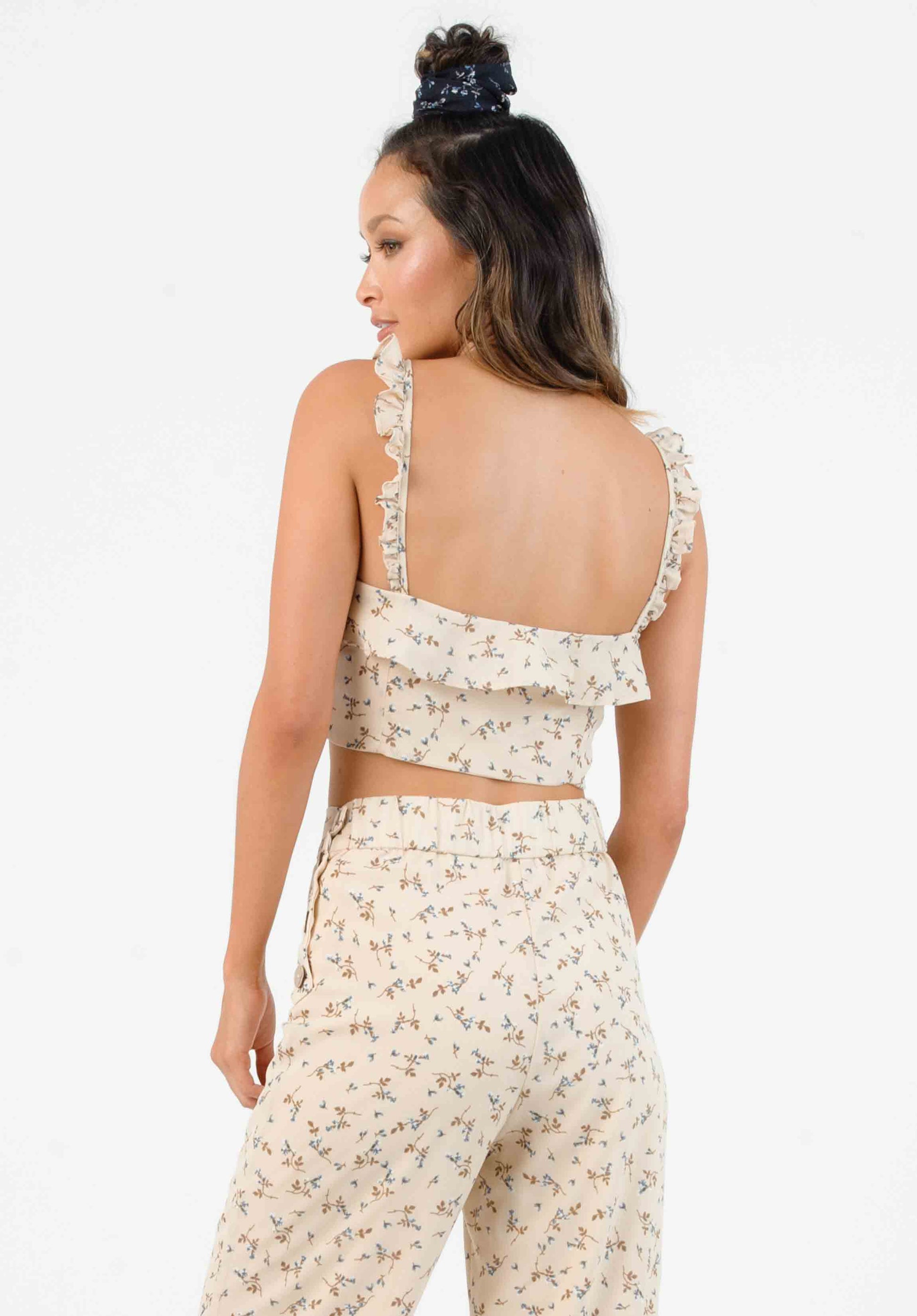 HYGEIA RUFFLE STRAP TOP-TAN MINI FLORAL