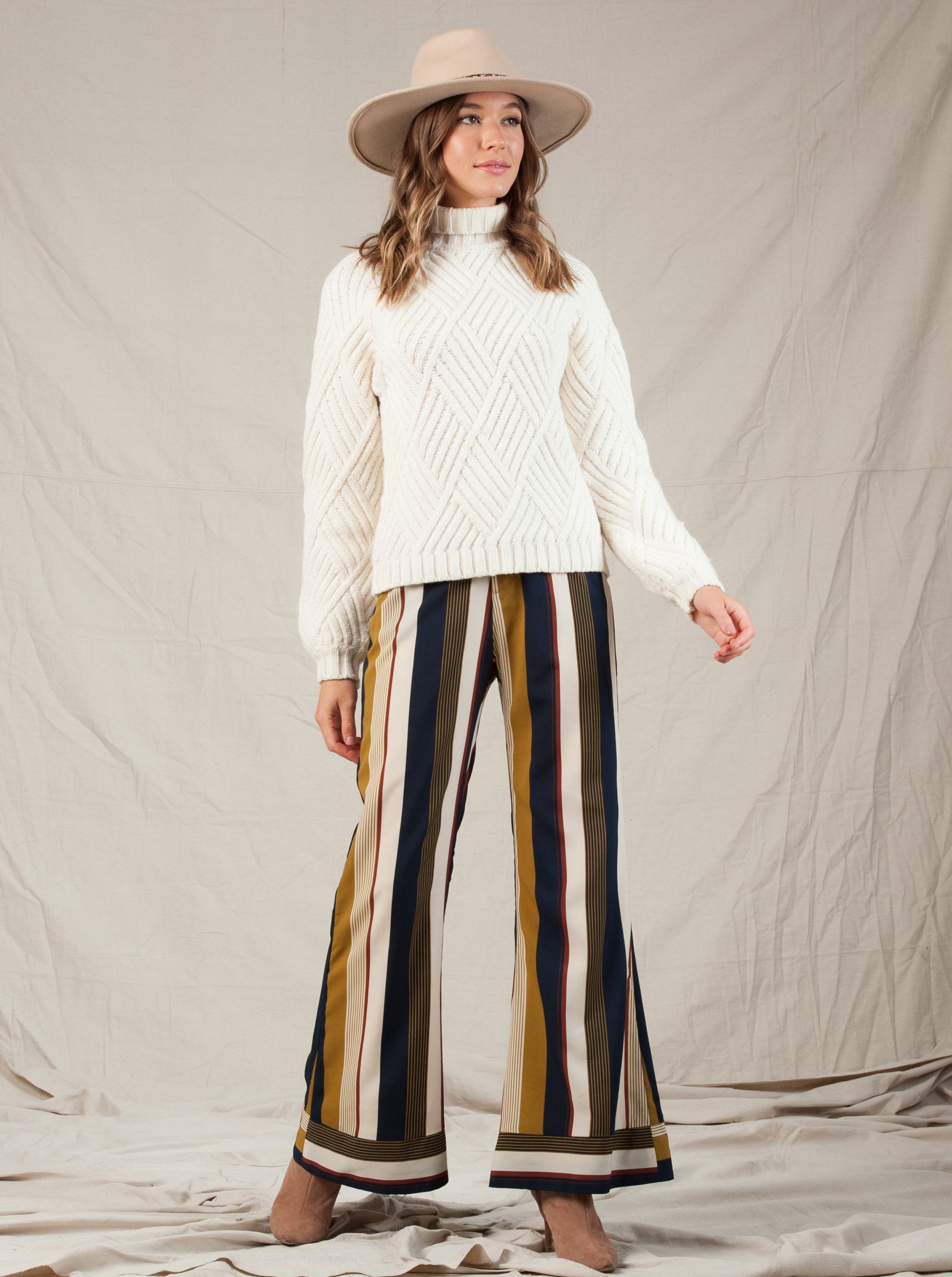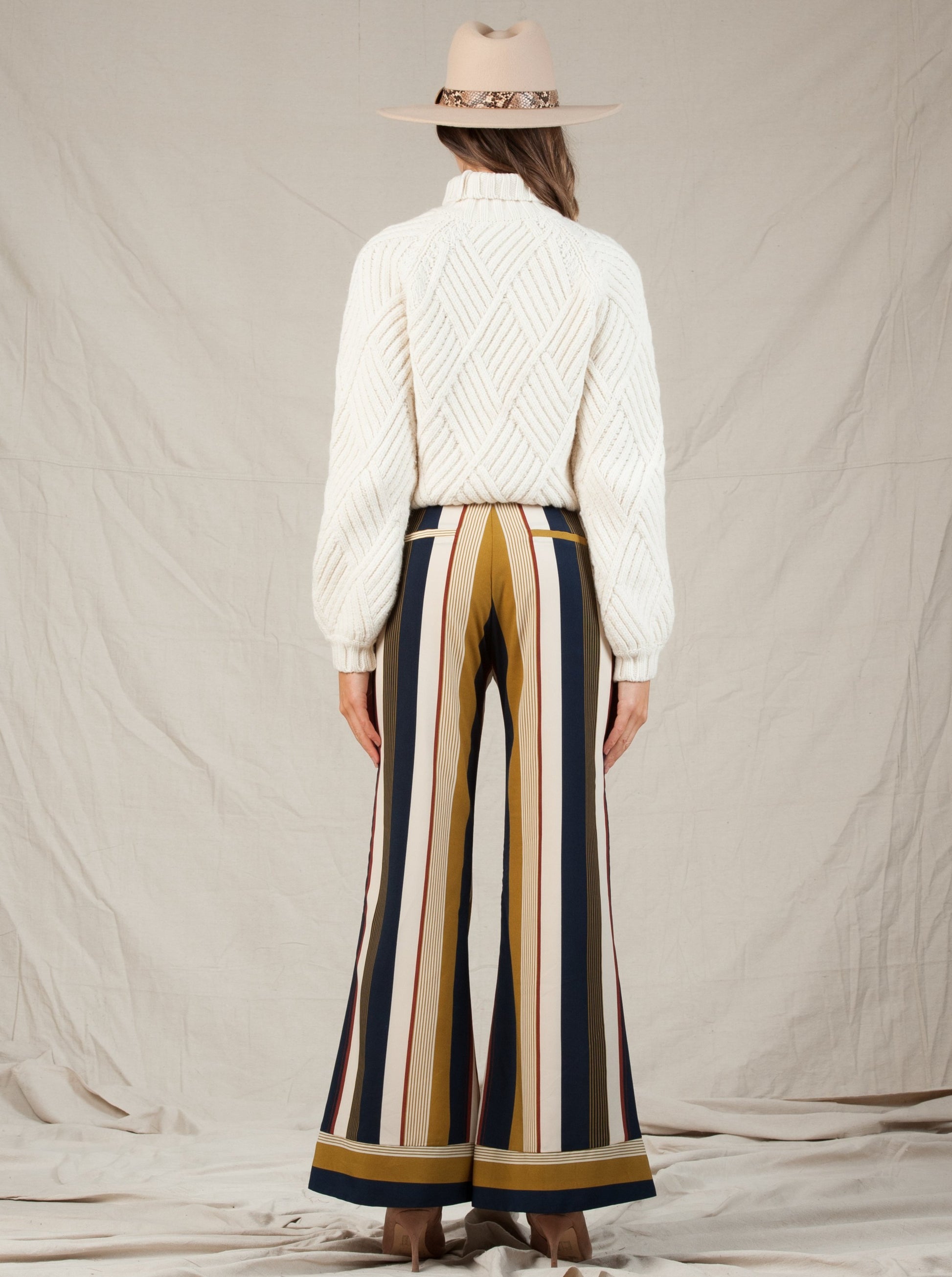 ISLA CONTRAST CUFF PANT-HARVEST STRIPE