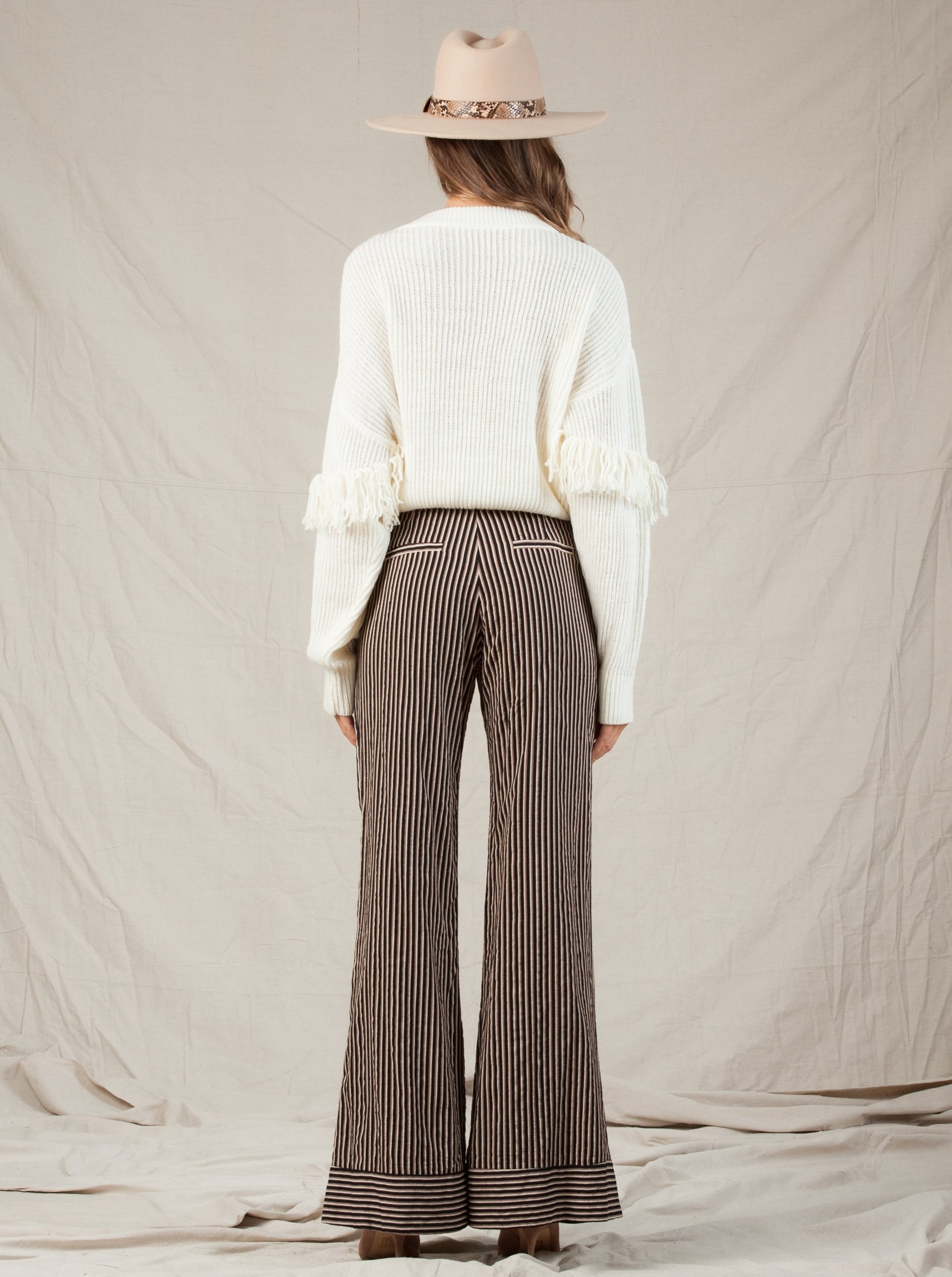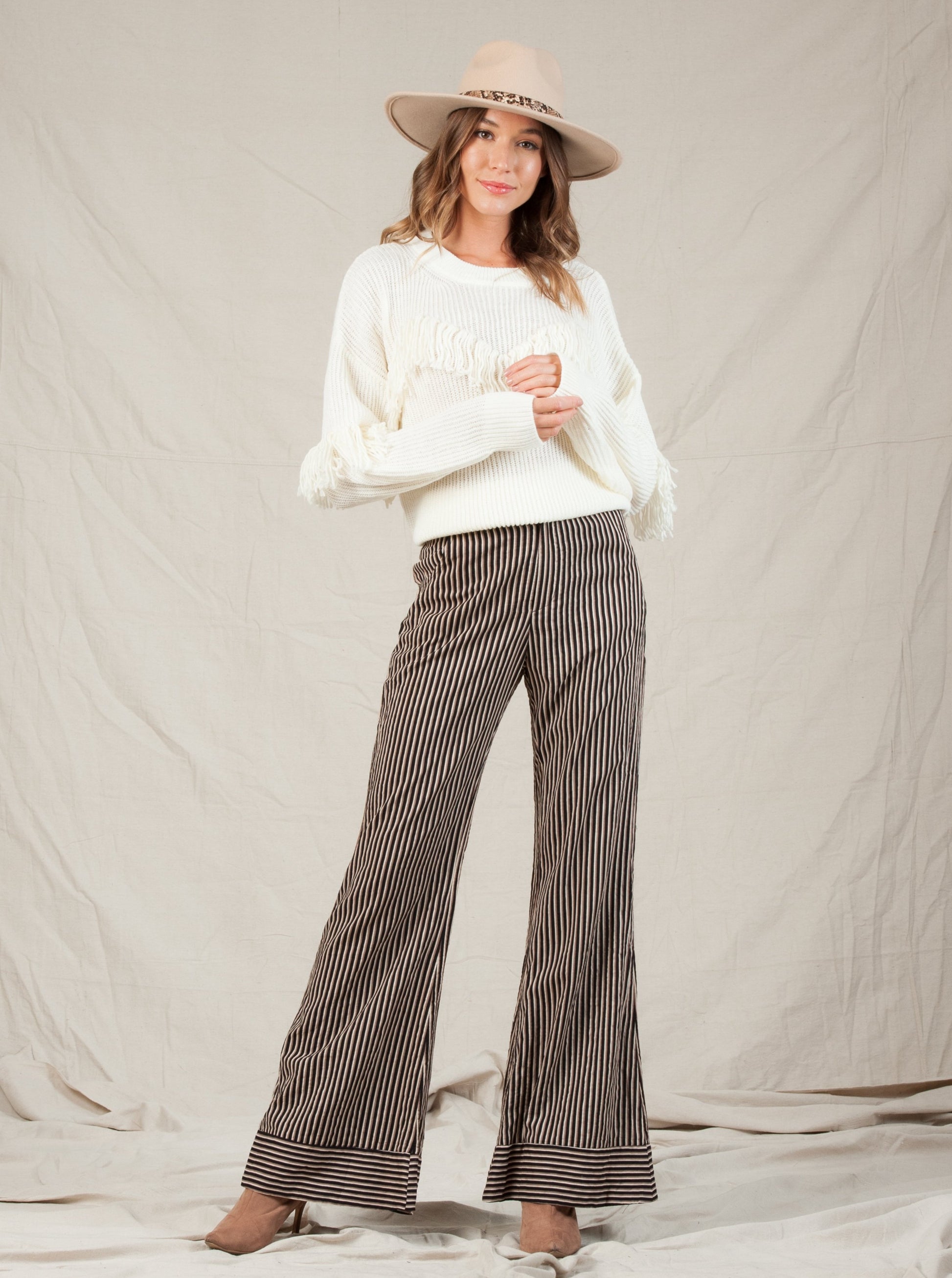 Super flattering and soft Stripe Pants with Contrast Cuffs and pockets front and back!