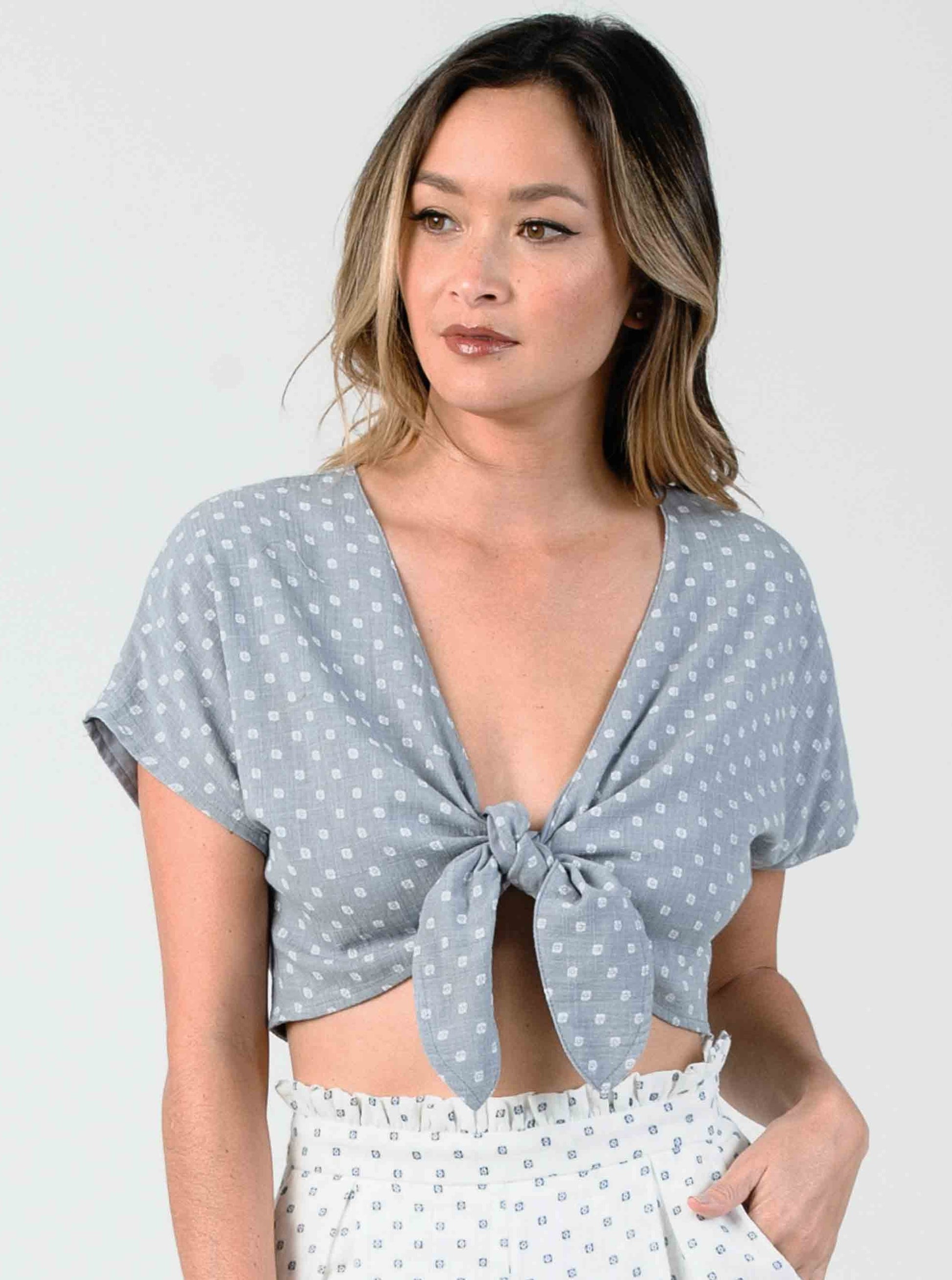 JUNE TIE FRONT CROP TOP-MINERAL BRUSH