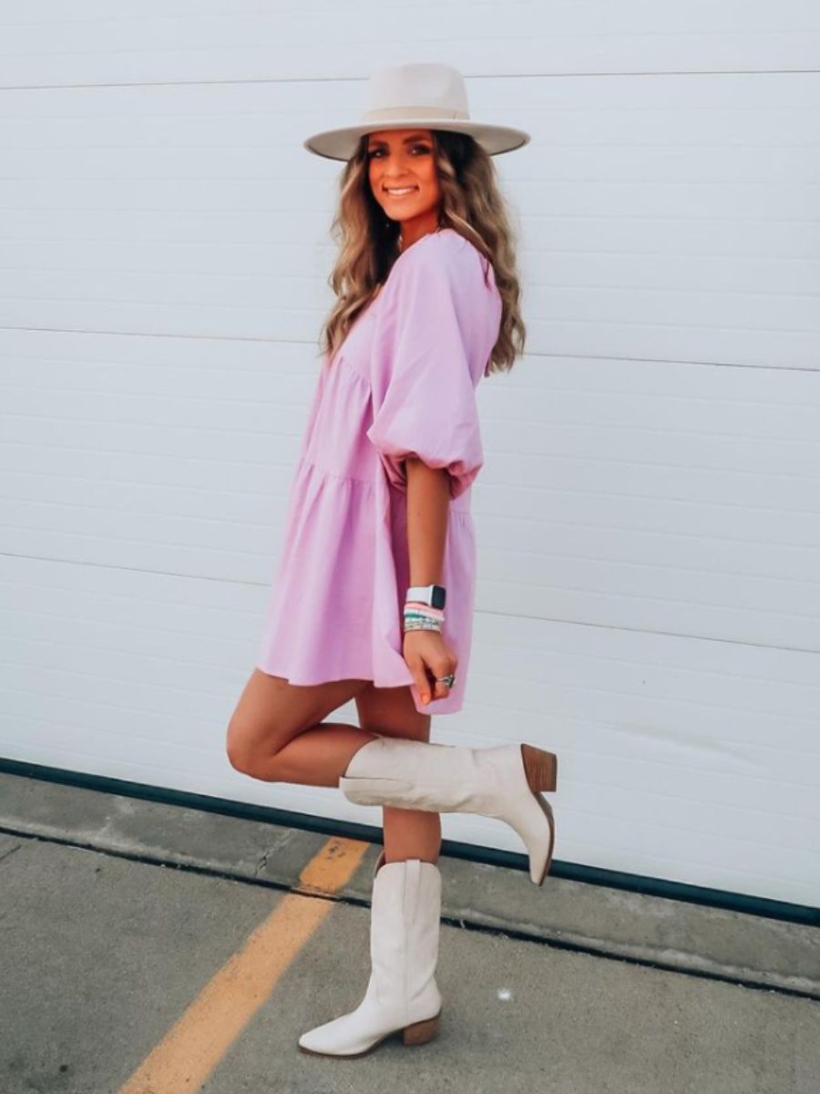 Tiered babydoll dress featuring puff sleeves! Perfect little spring and summer dress! Layer up for a boho look!