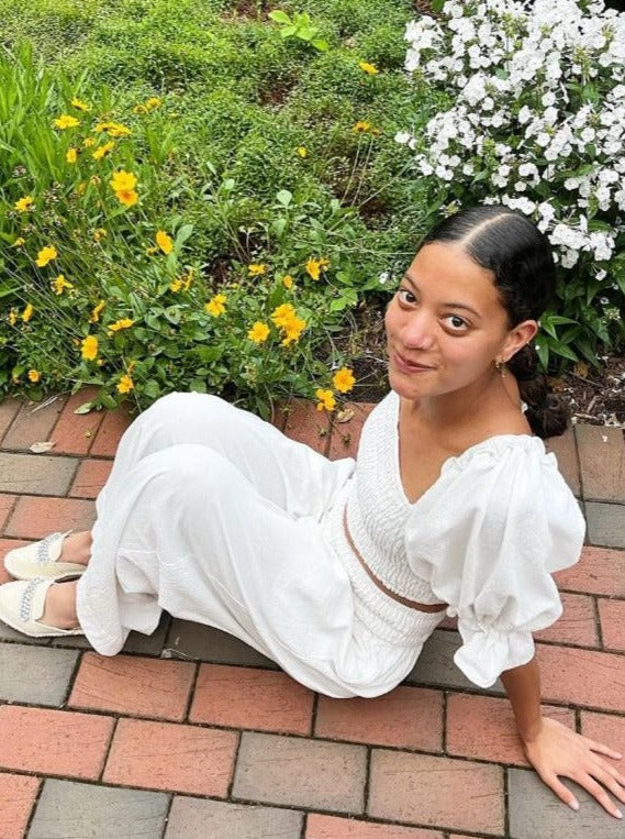 The Emilie Dream Top + Pant Set is perfect for the warmer months. It features a puff sleeve top with smocking detail and pull on pants with smocking detail at the waist, making it an ideal choice for a relaxed, boho-inspired look. Style simply with a LUCCA hat or layer on accessories for a chic finishing touch.