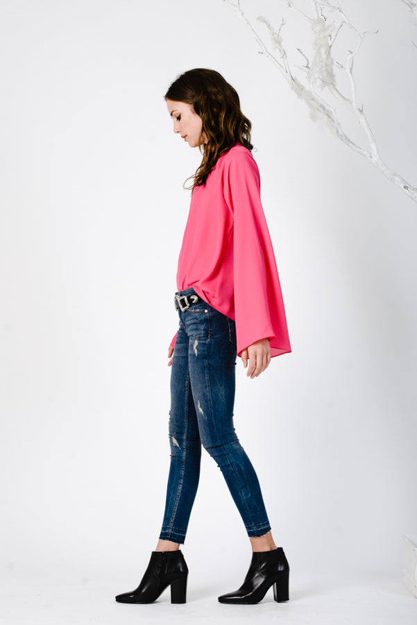BELL SLEEVE BLOUSE-FUCHSIA