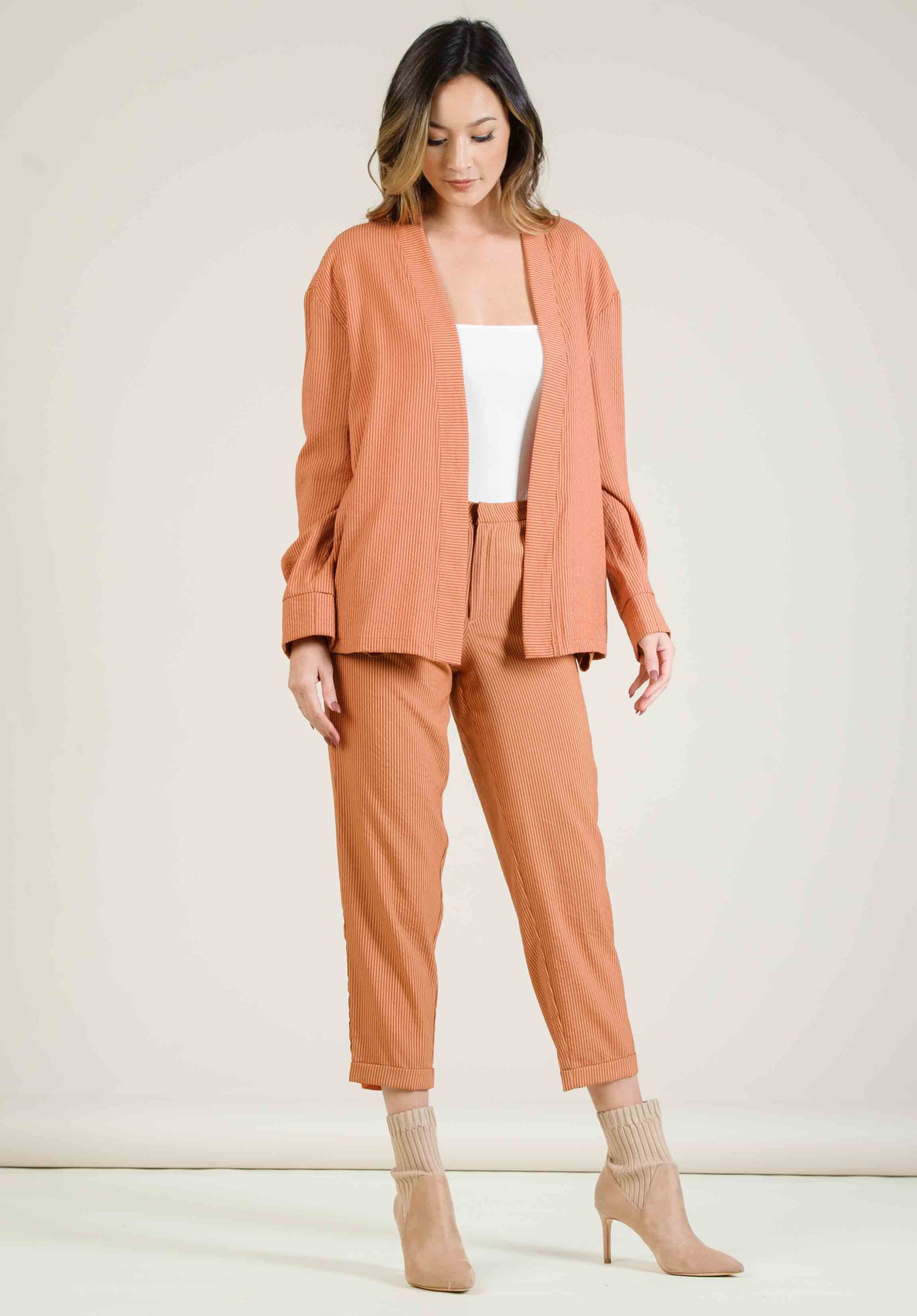 MALLROY ROLLED HEM TROUSERS-AMBER STRIPE