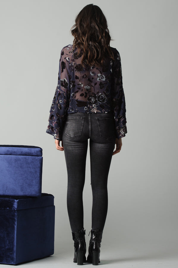 PIPER RUFFLE SLEEVE TOP-VIOLET FLORAL